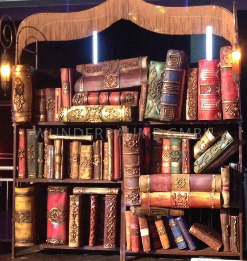 - 2,60 m x 0,95 m x 3,30 m (Länge x Tiefe x Höhe)- Bühnenbild, Kulisse- Dekoration mit großen ornamentverzierten Büchern- für indoor