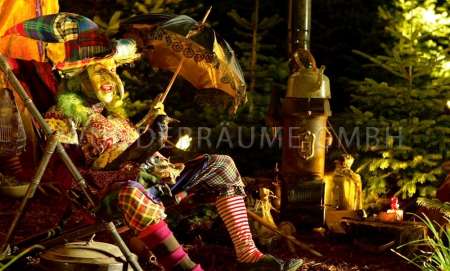 - Bespielung: Das Hexenhaus kann mit einem Hexen-Darsteller nonverbal bespielt werden