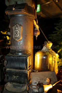 - Bühnenbild, Kulisse mit vielen Details (Kochstelle, Ofen, Geschirr etc.)