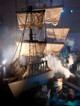 - Schiff ca.12,00 m x 3,00 m x 7,00 m (Länge x Breite x Höhe)- Bühnenbild, Kulisse mit vielen Details (Koffer, Kisten, Taue etc.)- für indoor