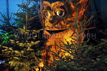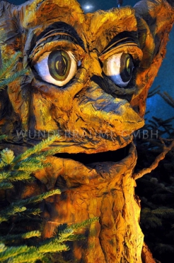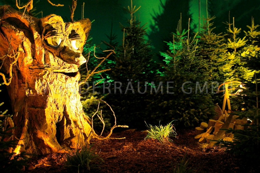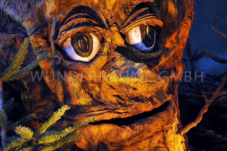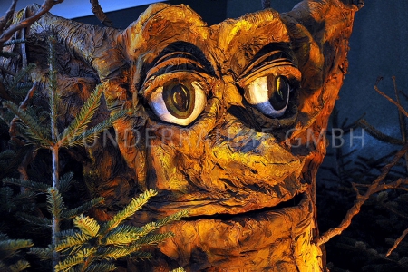 - 3,00 m x 3,00 m x 3,00 m (Breite x Tiefe x Höhe)- Bespielung: die Eiche kann mit zusätzlicher Tontechnik und einer Person mehrmals am Tag Geschichten erzählen. Mund und Augen sind beweglich- für indoor