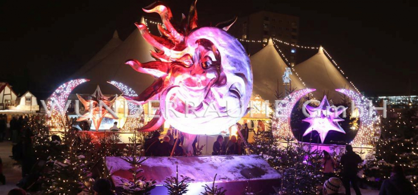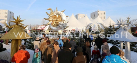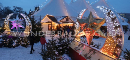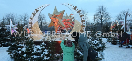 5 x Sterne mit Glitzermonden & Podest (Maß mit Podest ca. 2,40m x 1,20 m x 3,90 m (Breite x Tiefe x Höhe))
