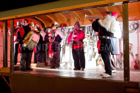 - rustikaler Zirkuswagen als offene Bühne (vorderseitig)